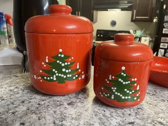 Vintage 80’s Waechtersbach Red Star Candy Bowl, Cookie Platter, & 2 Cookie Jars - Germany$120Kissimmee, FL
