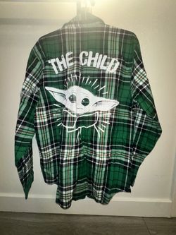 Cakeworthy Star Wars Mandalorian The Child mens green plaid flannel shirt $20Los Angeles, CA