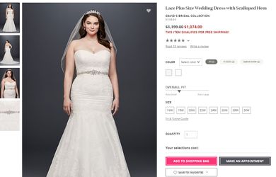 Lace Plus Size Wedding dress with Scalloped Hem Size 16W$450Modesto, CA