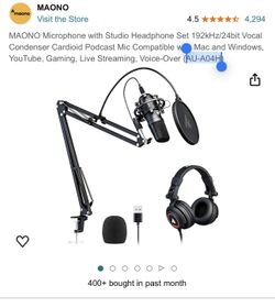 Studio Podcast YouTube Setup 192khz / 24bit Condenser Microphone Shock Double Spring Arm Mount, Pop Filter And 50mm Driver Headphones USB $60Las Vegas, NV
