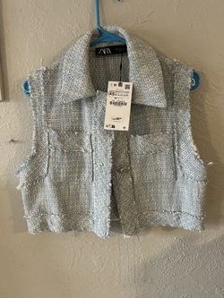 Zara frayed cropped textured vest, light blue, Xs$25Tampa, FL