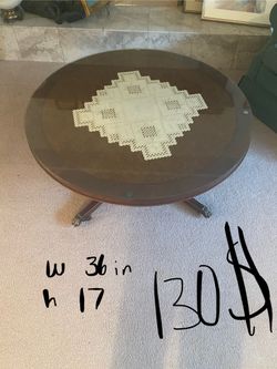 Antique Round Coffee Table - Mahogany With Leather Inlay$100Woodway, WA