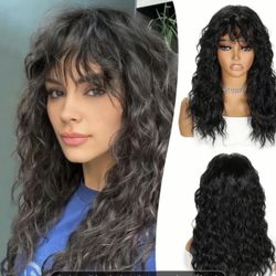 Human hair blend black curly wavy wig with bang$39Brooklyn, NY
