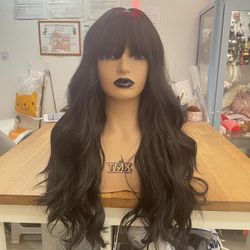 Human hair blend dark brown wig with bang$39Brooklyn, NY
