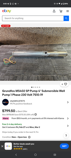 GRUNDFOS MS402 3/4 hp Submersible Pump Heavy Duty Stainless$325Murrieta, CA