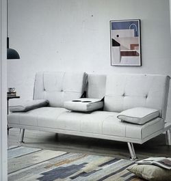 67 Inch White Leather Pullout Sofa / Bed With Coffee Tray $125Brentwood, TN