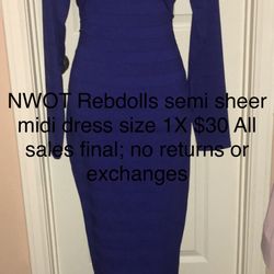 NWOT Rebdolls Blue Semi Sheer Midi Dress Size 1x$30Arlington, TX