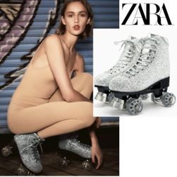 ZARA Four-wheel roller skates. Upper with rhinestone exterior and metallic pieces. Lac$150Fontana, CA