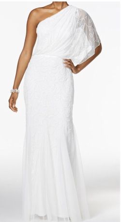 Adrianna Papell White Mesh Beaded One-Shoulder Womens Gown Dress$50Jurupa Valley, CA