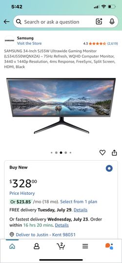 SAMSUNG 34” Ultrawide Gaming Monitor$190Kent, WA