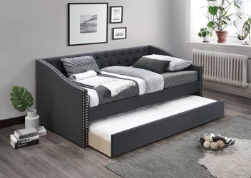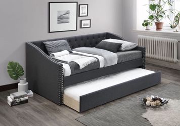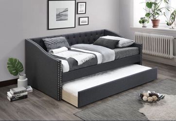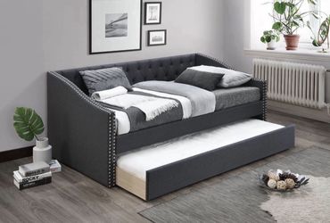 New Twin Size Day Bed w/ Slats + Trundle Charcoal Color. It comes with the 2 mattresses $380Long Beach, CA