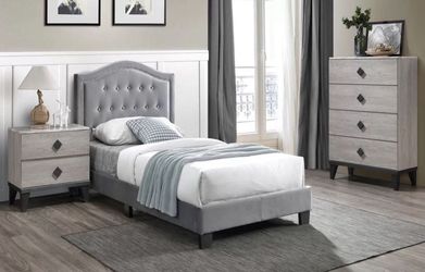 New Twin Size Bed With Adjustable Headboard, Comes With Mattress Grey Color $230Long Beach, CA