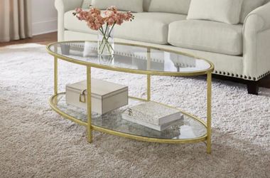 Bella 46 in. Gold Leaf/Clear Large Oval Glass Coffee Table with Shelf$190Dearborn Heights, MI