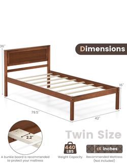 Twin Size Wood Platform Bed Frame with Headboard, Solid Wood Bed Frame with Slat Support, No Box Spring Needed. User it for couples of months.$40Sacramento, CA