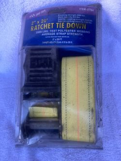 2”x20’ Ratchet Tie Down Tests at 2500 lbs Polyester webbing New in Package$30Tucson, AZ