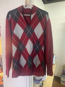 Man’s international concepts mock neck pullover argyle diamond print solid red on back and sleeves w/black leather shoulders$38Tucson, AZ