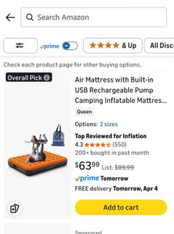 Air Mattress with Built-in USB Rechargeable Pump$45Crystal City, CA