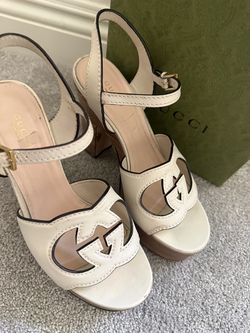 Cosmos Softy Calfskin Wooden Interlocking G Cut-Out 30/120mm Platform Sandals 38.5 Mystic White$250Buckeye, AZ