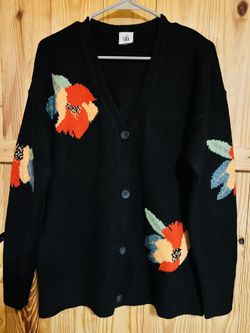Cabi Black Floral Knit Cardigan Sweater Oversized Women’s Sz S$30Summerton, SC