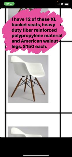 XL White Bucket Seats W American Walnut Legs. $150Irvine, CA