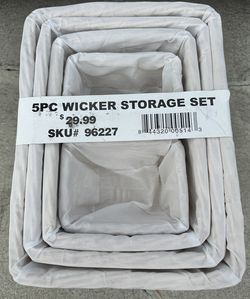 5 Piece Lined Wicker Basket Storage Set$20West Palm Beach, FL