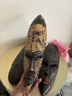 OMA Set Of Three African Decorative Masks For Fortune And Luck Wooden Hand Crafted Tiki Tribal Home Decor Gift - 12" High$50Corona, CA