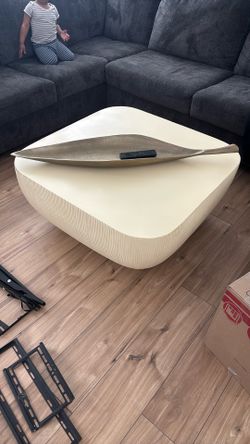 SSLine Bowl-Shape Coffee Table Modern Sintered Stone Top Coffee Table in Cream White Leatherette Unique Bowl Center Table for Living Room Bedroom$90Corona, CA