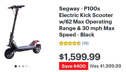 Segway - P100s Electric Kick Scooter w/62 Max Operating Range & 30 mph Max Speed - Black