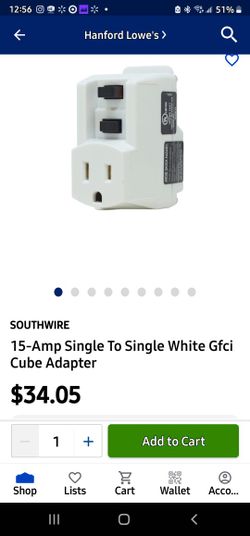 Southwire 6 120-Volt, 15-Amp, 1800-Watts, Single Outlet GFCI Adapter, For Indoor Use With Manual Reset$25Hanford, CA