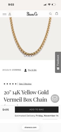 Shane Co NEW In Box 20'' 14K Yellow Gold Vermeil Box Chain (4mm)$420Avondale, AZ
