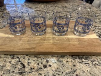 4 Vintage Retro Libbey "Flower Power" Blue Band Floral Juice Glasses$25Fresno, CA