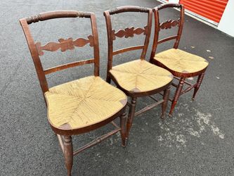 Vintage French Ladderback Dining Chairs Solid Wood Woven Rush Seats Set Of 4 $225Vancouver, WA