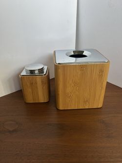 Simplehuman Tissue And Q Tip Dispensers Containers Bamboo Mcm Teak $25Long Beach, CA