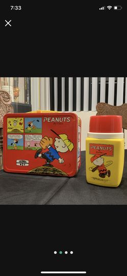 Snoopy and Charlie Brown Red Comic Metal Lunch Box & Thermos $75Riverside, CA