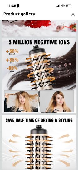 DAILYLIFE Rotating Hair Dryer Brush for Women, Spinning Blowout Brush, with 2 Brushes (1.5" & 2"), Ceramic Barrel, Negative Ion, Black and Gold$25Glendale, AZ
