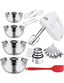 5-Speed Electric Hand Mixer, 4 Large Mixing Bowls Set, Handheld Mixers with Whisks Beater, Stainless Steel Metal Nesting Bowl Measuring Cups Spoons Ki$25Glendale, AZ
