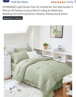 HYMOKEGE Light Green Twin XL Comforter Set Seersucker 5 Pieces, All Season Luxury Bed in a Bag for Bedroom, Bedding Set with Comforter, Sheets, Pillow$35Glendale, AZ