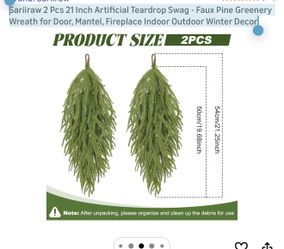 Sariiraw 2 Pcs 21 Inch Artificial Teardrop Swag - Faux Pine Greenery Door, Mantel, Fireplace Decor$15Glendale, AZ