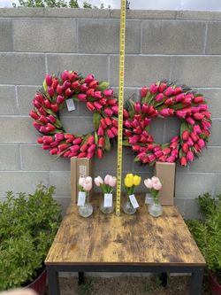 🌷Artificial Tulip Bundle 🌷 two wreaths & Four Glass Bouquets 🌷🌷New With Tags 🌷🌷 💥Retails $192+tax💥$90Bakersfield, CA