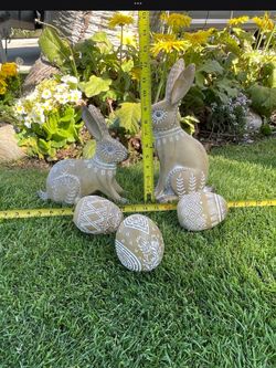 🐣 EASTER SALE🐣 Two Etched Floral Sitting Bunny’s & Three Eggs Decor is a resin rabbit figurine featuring Scandinavian-inspired floral designs and a$30Bakersfield, CA