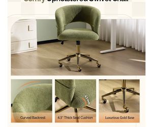 VINGLI Modern Curved Office & Vanity Desk Chair, Cute Upholstered Nail Chair with Wheels & 360° Swivel & Club & Tilting & Gold Base, for Bedroom, Livi$50Visalia, CA