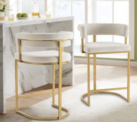 of 2 Beige Modern Velvet Bar Stools with Barrel Backrest, Upholstered Seat, and Gold Metal Footrest – 25.6-Inch Seat Height, Ideal for Counters, Home $100Visalia, CA