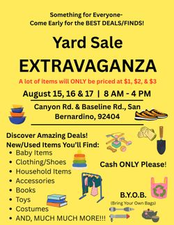 Yard Sale 8/16-8/17$123San Bernardino, CA