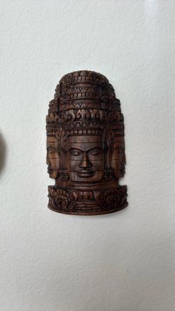 Hand Carved Wooden Proum Face in the Bayon style of Cambodia $50Irvine, CA
