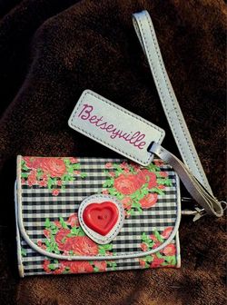 Super Cute, Like NEW Betsey Johnson , Gingham & Roses Clutch/Coinpurse $30Hemet, CA