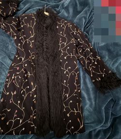 Vintage 90s UNIQUE RARE long Coat floral embroidered suede feel Faux Fur Trim S/M $150Springfield, OR