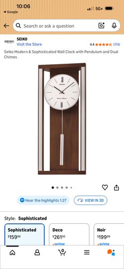 Seiko Modern & Sophisticated Wall Clock with Pendulum and Dual Chimes$95South Lyon, MI