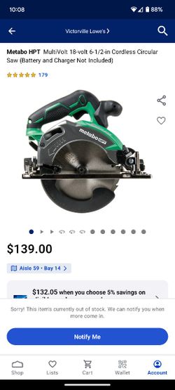 Metabo HPT 18V 6 1/2" Cordless Circular Saw(TOOL ONLY)$70Victorville, CA