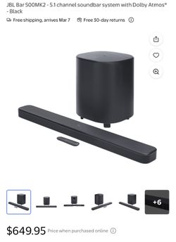 New JBL Bar 500MK2 - 5.1 channel soundbar system with Dolby Atmos® - Black$450Miami, FL
