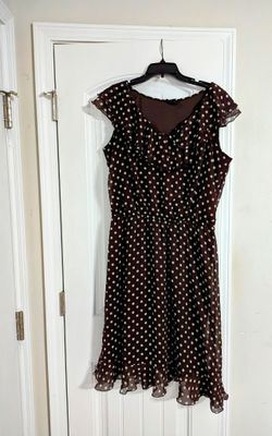 Women's Brown Polka Dot Ruffle Neckline and Hem Sleeveless A-Line Dress$18Columbia, SC